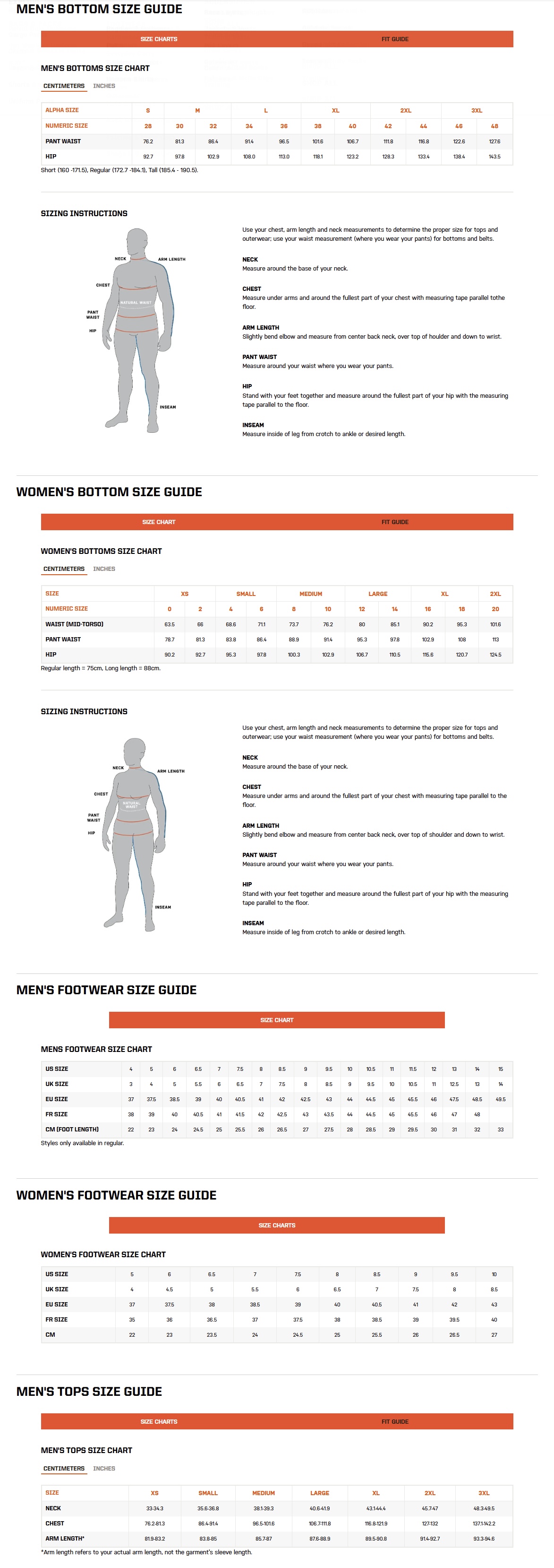 Size Charts